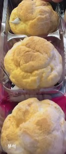 KBO 삼구삼진슈는 겉은 폭신한 슈 패스츄리, 속은 달콤한 커스터드 크림으로 가득 차 있어요.