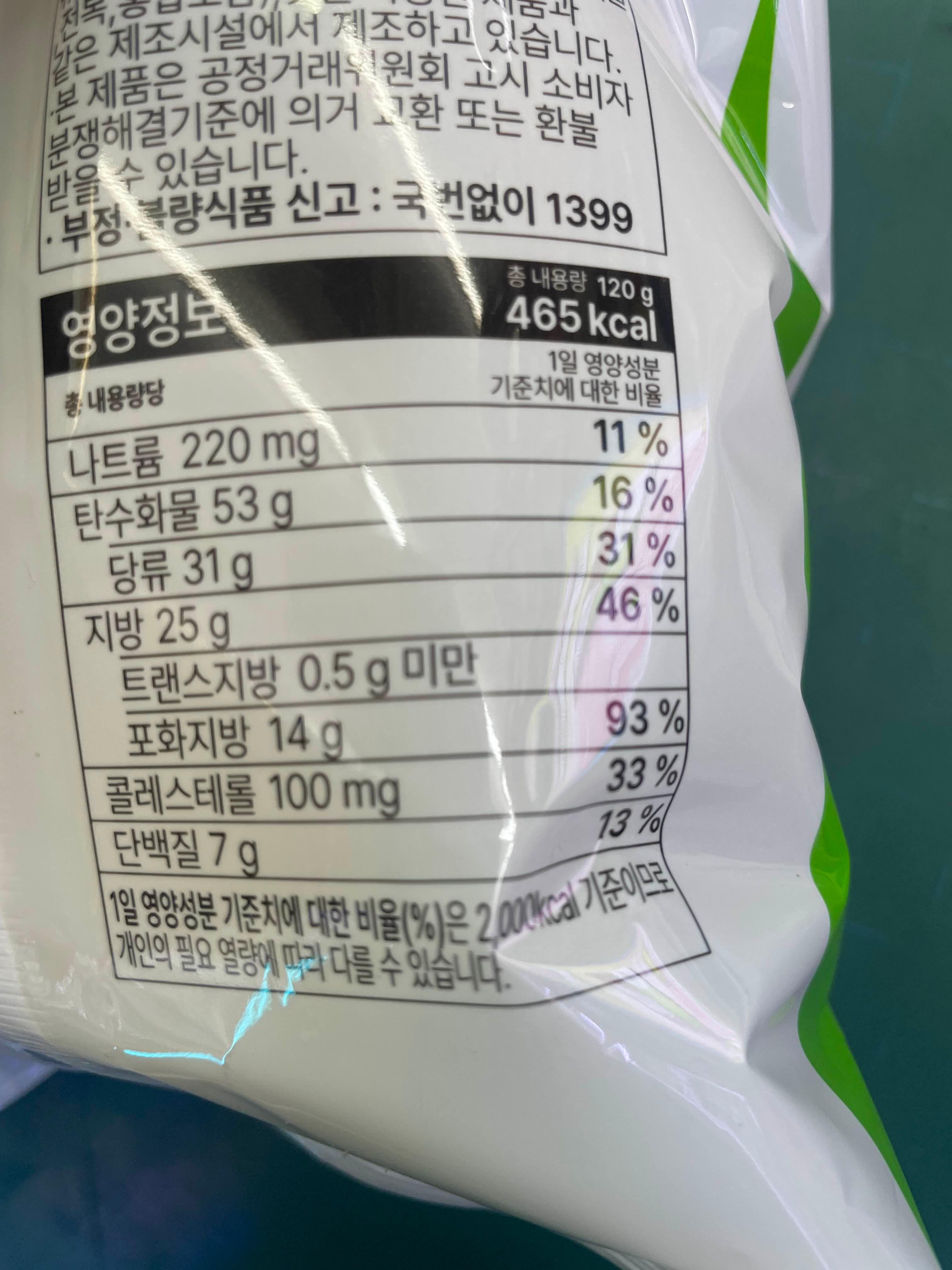 열량은 465kcal로 꽤 높은 편입니다.
